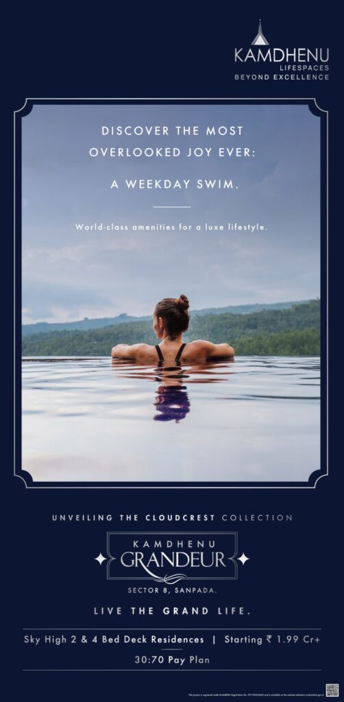 Kamdhenu Grandeur is an aesthetic residential address in the prime neighbourhood of Sanpada in Navi Mumbai. The edifice presents lavish 2, 3 and 4 BHK cloudcrest apartments. The finely designed apartments offer optimum spaces, immense ventilation and astounding views of the Parsik Hill and Arabian Sea. Every residence is equipped with elegant interiors, branded fittings and wide sun decks. The highest floor-to-ceiling height gives a palatial feel.